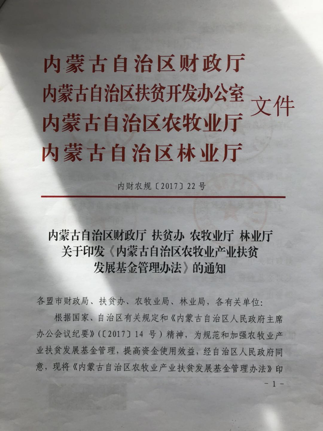 关于转发《内蒙古自治区农牧业产业扶贫发展基金管理办法》的通知