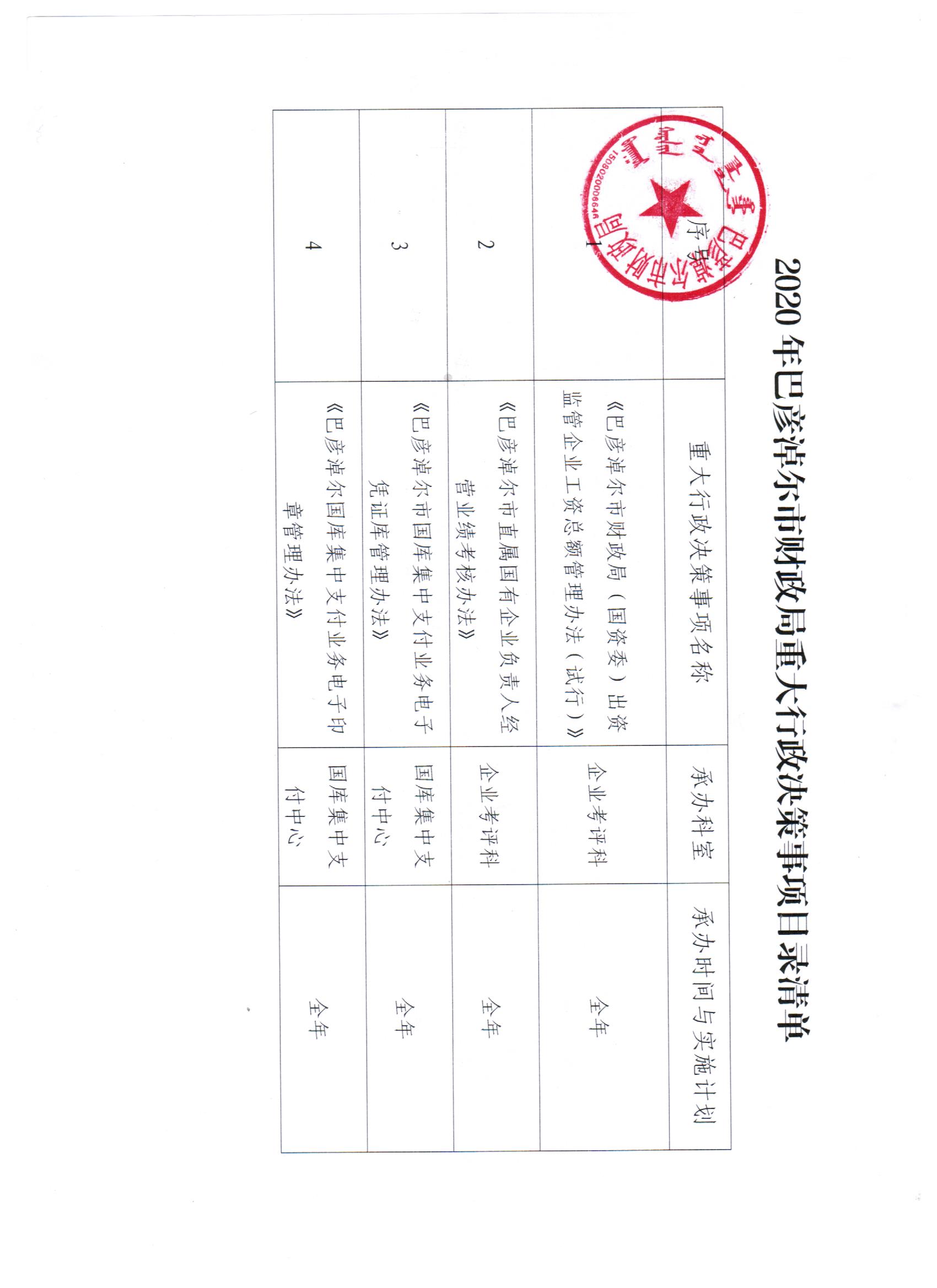 附件:2020年巴彦淖尔市财政局重大行政决策目录