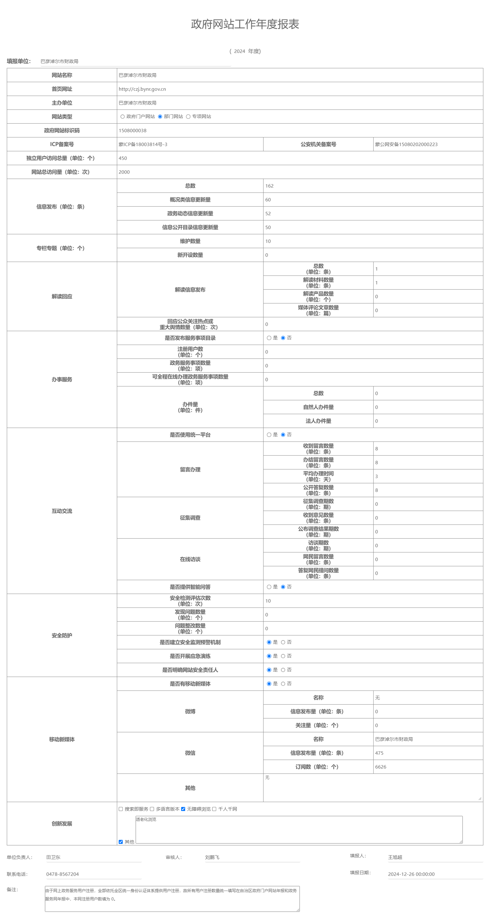 2024年巴彦淖尔市财政局政府网站工作年度报表